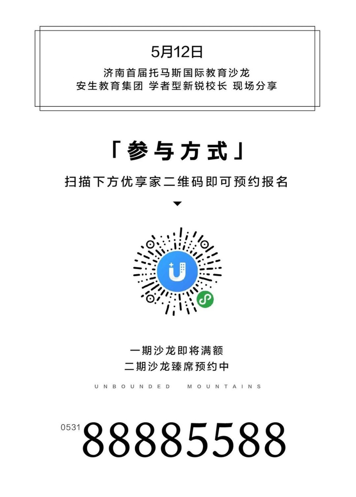 作为正式全面招生的第一年,济南托马斯实验学校严谨和慎重,今年9月即将入学的所有学生都将由剑桥大学面试官亲临济南,现场一对一面试考核。而在本周日(5月12日)的国际教育沙龙上,安生教育集团美国高中项目总校长、学者型新锐校长戴校长携托马斯招生办团队亲临,面对面聚焦国际教育,一对一解答招生疑问,为有计划就读国际学校和选择海外求学的家庭宣讲择校建议。