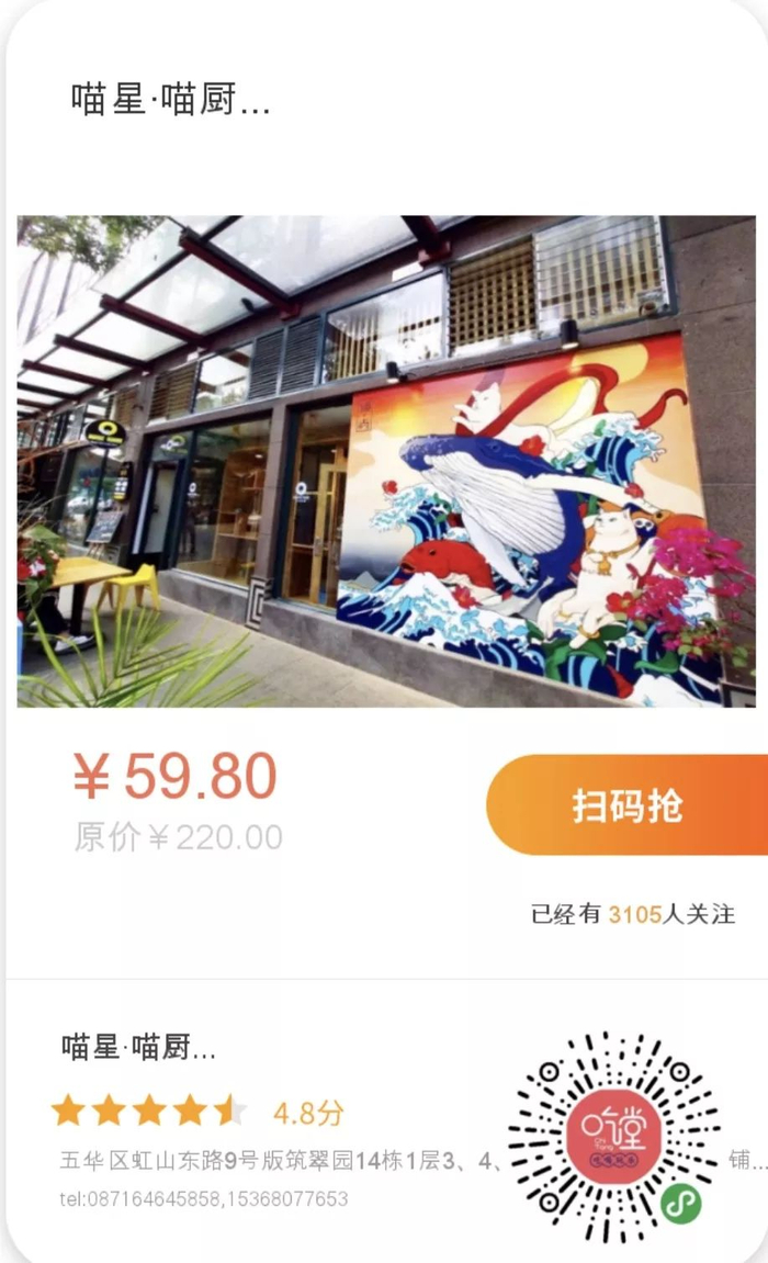 地球人已经无法抵抗喵星人的魔力了,上周的喵星·喵厨套餐券迅速被抢购一空,吃堂第一时间进行补货。长按识别图中小程序码抢购,一起去吸猫呀!