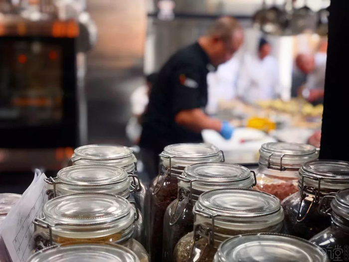 单是一道法式坚果酱就让我看花眼,五种优质坚果和蔓越莓均匀铺洒后,要经历进烤箱、冷却、橄榄油调制、放入破壁机搅拌的漫长过程,耗时超过1个小时。成品的香味叫人饥肠辘辘,难以想象大厨们是如何控制住自己不偷吃的。