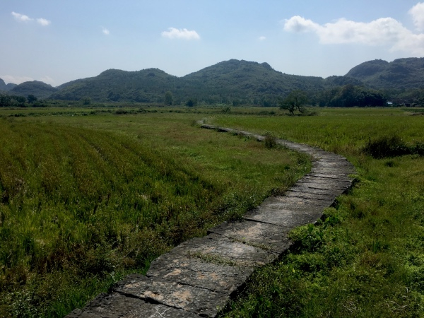 江永何家湾村,田间保存完好的石板路。