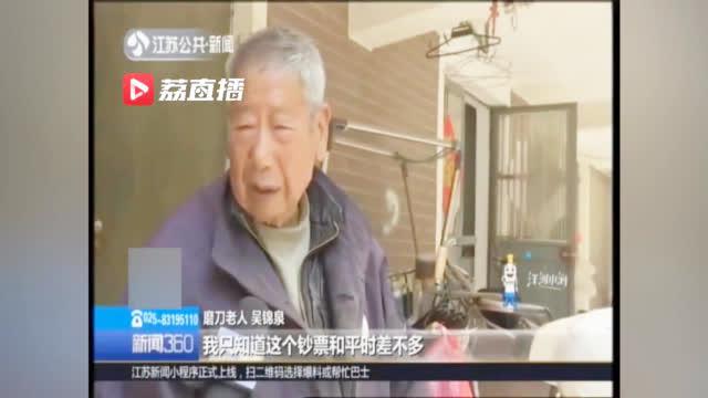 91岁老人磨刀攒下2万 捐款时发现被人掺了假钞