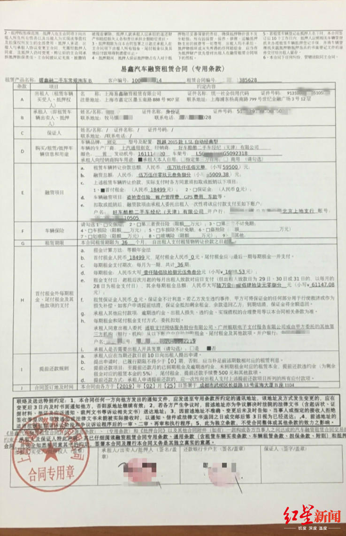 陈先生签署的融资租赁合同