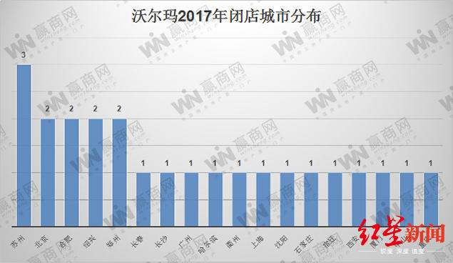 值得注意的是,沃尔玛2017年关闭的门店几乎都集中在一二线城市。