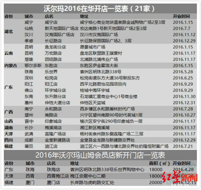 就在沃尔玛开启闭店序幕的2016年,沃尔玛全年新开24家门店(含3家山姆会员店),其中湖北4家、云南3家、内蒙古1家、广东7家、广西2家、山西1家、湖南1家、天津2家、四川1家、福建2家。