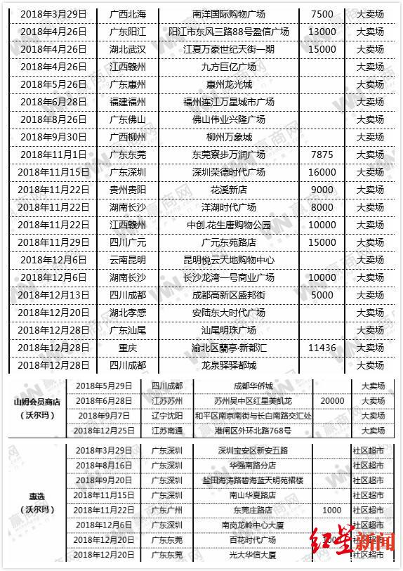 2018年,与新开的21家大卖场不同,沃尔玛还新开了4家山姆会员店以及8家“惠选”超市门店。