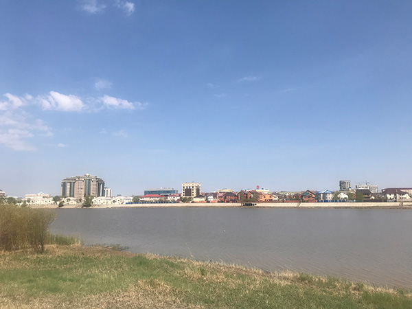 阿特劳4月份还不是很热。但因过于干燥,在太阳底下多呆那么一会儿就会觉得炙烤难耐。夏季干燥炎热,冬季干燥寒冷,阿特劳是典型的大陆性气候。说好的滨海而居呢?