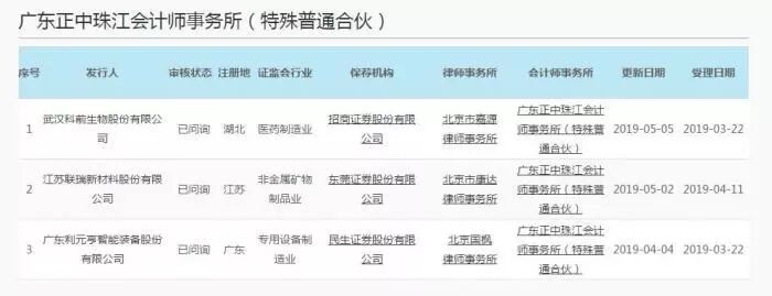 根据上交所数据,目前由正中珠江担任会计师事务所的科创板申报企业共有3家,分别是科前生物、联瑞新材、利元亨智能。