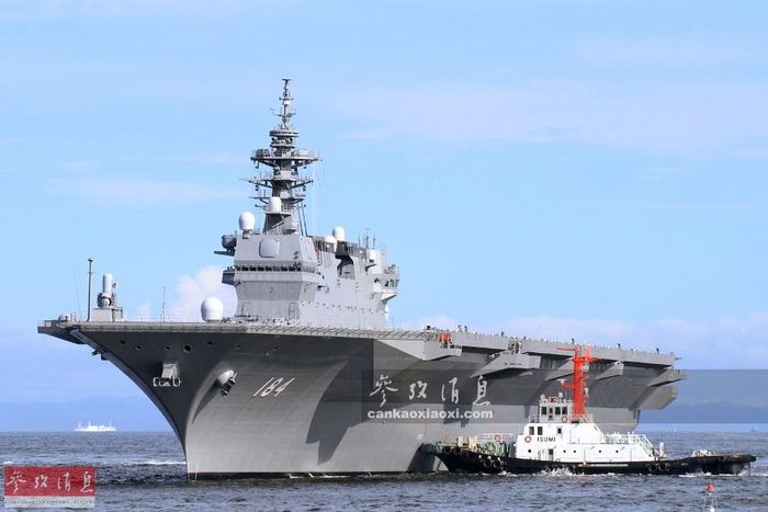 1下面再来看日本F-35B的未来母舰,出云级直升机航母(国内一些媒体称其为“准航母”其实并不准确)。2017年3月22日,出云级2号舰“加贺”号的服役曾引起国内媒体的高度关注,因其直接沿用了已被击沉的二战日本海军航母“加贺”号,军国主义复兴意味十分明显。图为“加贺”号(DDH-184)出港海试资料图。