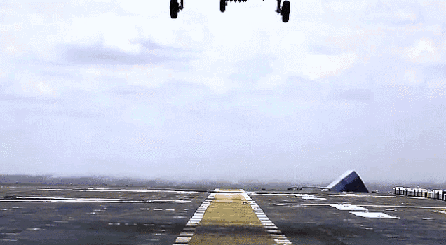 如果说日本引进F-35J的目的主要是为练手和积累隐身战机使用经验的话,那么引进具备短垂起降上舰能力的F-35B才是他们最主要的目标。图为F-35B短垂着舰动态图。