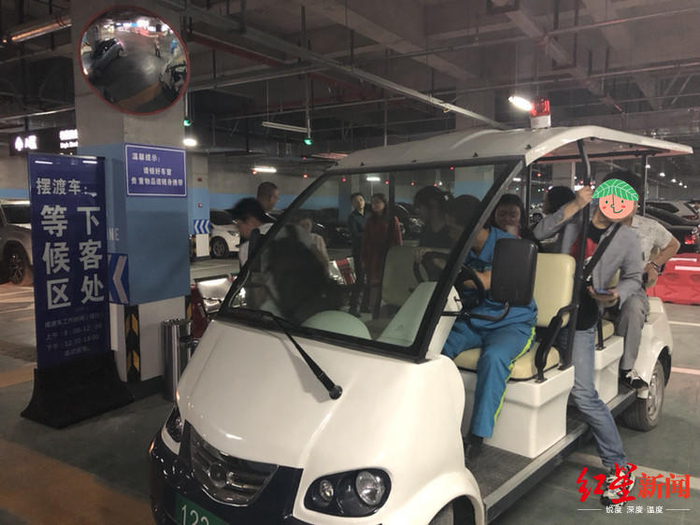 红星新闻记者尝试乘坐了摆渡车,从停车场内的摆渡车站上车,大约2分半钟就到达了公行道上的出口,下车后步行约100米就到医院了。据现场工作人员介绍,目前在试运行,会根据实际情况增加摆渡车的数量。