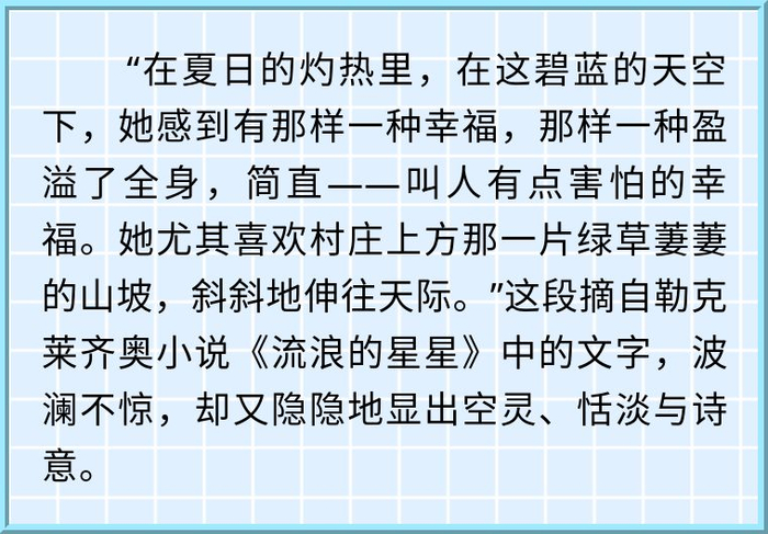 不久的将来,勒克莱齐奥另一本中国文化的书将会出版。“这并是一部游记,我将记录下我对中国的感悟,比如像孟子、墨子一些古代思想家,另外还将在书中谈一谈中国的风景,比如长江,这条河非常奇妙,我在水边看江水滚滚东流,突然感受到了中国历史,也是一条长河。”