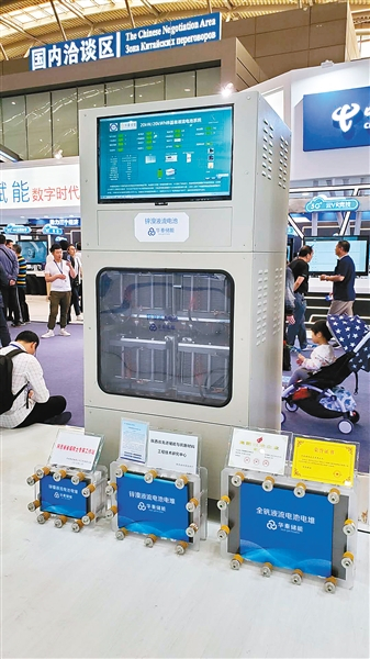 现场的工作人员向记者介绍,这是华银集团与中国科学院大连化物所联合研发的锌溴液流电池储能系统,别看它“身材”小,却蕴藏着大能量,华银集团年内将推出的100KWH锌溴液流电池可为普通家庭提供半个月的用电。锌溴液流电池技术可用于可再生能源储能、电网调峰、应急电源等多个领域,同传统储能电池技术相比,具有安全不爆炸、环保可回收、高功率大容量、20年超长使用寿命等特点。此次展出,标志着液流电池即将走进千家万户。