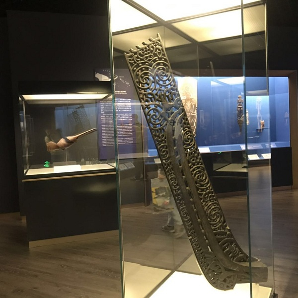 “此次展览的展厅及展柜都是以蓝色为基调,代表着海洋,也符合了‘海洋命运共同体’中‘驶向深蓝’的概念。展品在陈列时,我们利用了展厅的特点,化局限为优势,根据不同的层高来展陈不同大小的展品。而且展品的转换过程中有着非常流畅的叙事性。另外,展览还为特殊人群的看展做了一次探索,在展厅的一个角落,做了部分重要展品的复制品及盲文说明,以便盲人的参观。”杨志刚补充说。