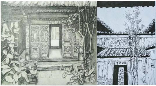 云南大学的学生为莫家宅院做的测绘图和写生。