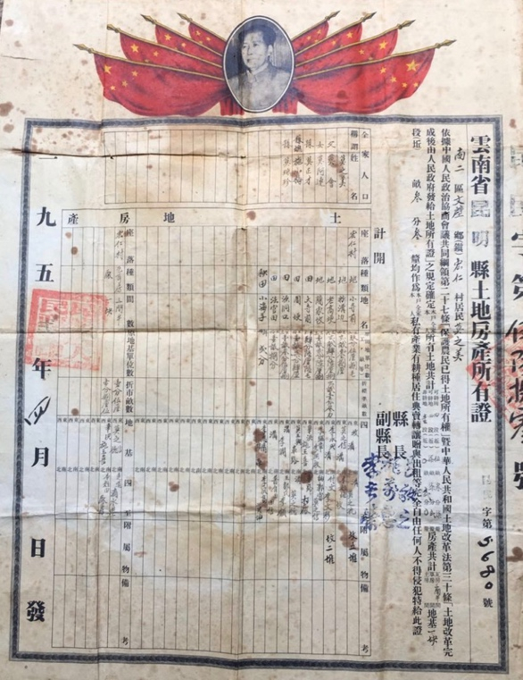 1952年,这幢房屋获得当时昆明县政府颁发的《土地房产所有证》(土地证)。在下图,这张当时的土地证上,还列有现在的户主莫正才的名字。
