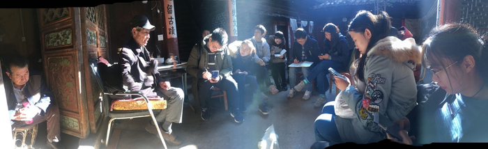2019年初,莫正才在油春上接待来访的大学生。