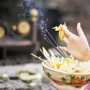 女子在殿堂敬香祈福