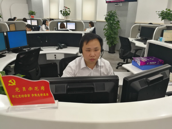 图说:接线员正在接听热线。热线办供图