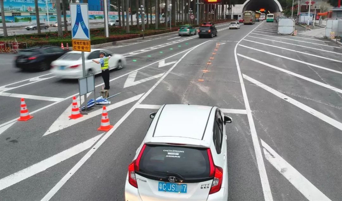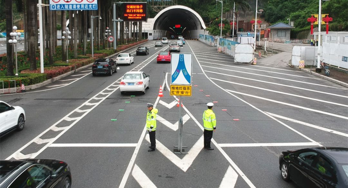交警部门经过长时间对交替车流规律调研分析,板樟山隧道口交通流量大,车辆出行集中,不仅要解决交替车辆通行秩序问题,还要提高两股交汇车流通行效率的问题。▼