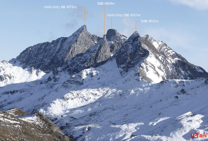 在阿坝州小金境内,有一座山峰叫做“HelloKitty峰”,正是温钧浩给它命名的,来自一次“走错路”后的意外发现。温钧浩说,拍摄到这座雪山后,自己与“三晋与嘉绒”聊天,提到这座山峰没有任何的信息,但看上去就像“HelloKitty”的圆脸和猫耳朵,“三晋与嘉绒”建议,不如就叫它“HelloKitty峰”吧。温钧浩有点担心,会不会不够严肃。但研究高海拔山峰,本身就是一件略显枯燥的事,偶尔有趣一点,也无可厚非。温钧浩在对外公布自己对“HelloKitty峰”的命名后,也并未有人提出质疑,“大家都觉得,挺好玩的。”