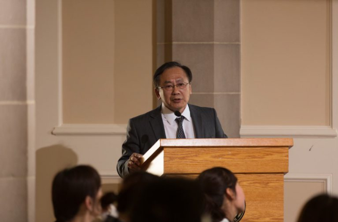 四川大学匹兹堡学院首任院长、匹兹堡大学杰出服务教授、匹兹堡大学斯旺森工学院副院长邱民京为与会来宾、学生及家长介绍了匹兹堡学院的诞生历程和办学使命,并向一路走来陪伴和支持学院发展壮大的四川大学和匹兹堡大学工作人员致以最诚挚的感谢和敬意。