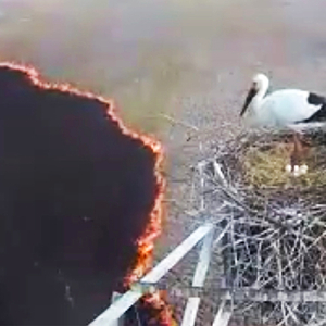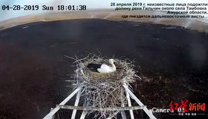 俄罗斯当地媒体指,此次野火事件是阿穆尔州坦波夫卡(Tambovka)一个村子的几名纵火犯所为。据介绍,当时遭遇野火危机的东方白鹳父亲坚持守住了自己的巢穴,完美保护了5颗待孵化的鸟蛋,本月5日,成功孵化出的两只雏鸟迄今仍然在原处生活,它们平安无事的消息,也令鸟类保育者们十分振奋。