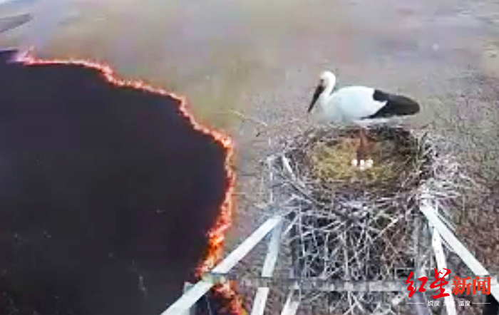 原标题:东方白鹳“英雄父亲”:冒着大火仍坚守巢穴淡定孵蛋