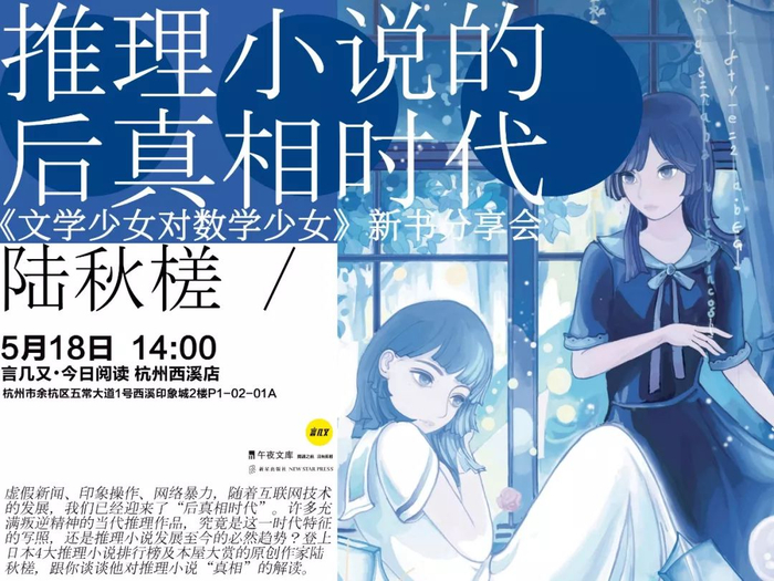 虚假新闻、印象操作、网络暴力,随着互联网技术的发展,我们已经迎来了“后真相时代”。许多充满叛逆精神的当代推理作品,究竟是这一时代特征的写照,还是推理小说发展至今的必然趋势?登上日本四大推理小说排行榜及本屋大赏的原创作家陆秋槎,将在杭州和你谈谈他对推理小说“真相”的解读。