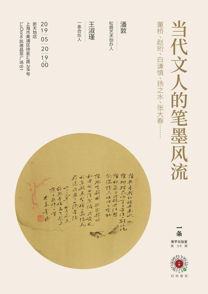 5月20日,松荫艺术创办人潘敦将做客一条美学实验室,和我们谈谈文人书法的历史脉络以及当代文人的书画修养。