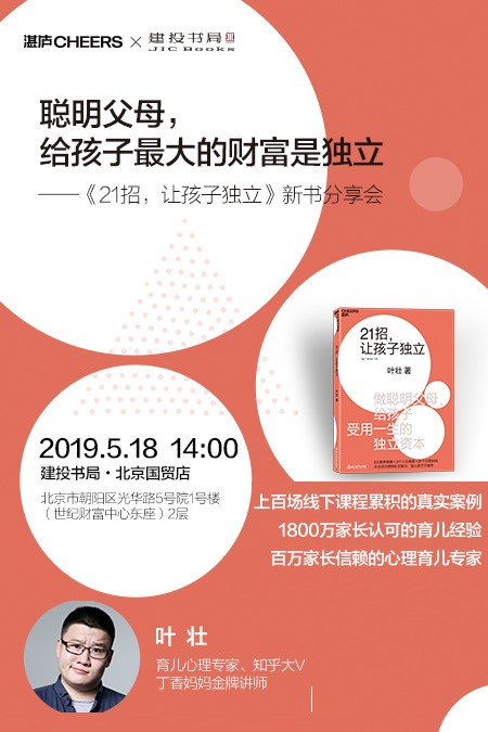 如果孩子3岁了,你还在给他穿衣、喂他吃饭;如果孩子上幼儿园了,每天早上都要跟你来一番生离死别;如果孩子跟别的小朋友抢东西,你总是忍不住冲上去拉架;如果孩子上小学了,你每天都为了帮他完成作业而挑灯夜战.......那么这场分享你一定不能错过!你去问任何一个父母,希望孩子拥有哪些品质,排名靠前的一定有一项,就是“独立性”。那么什么才是真正的独立?培养孩子独立性又应该遵守什么原则运用什么方法?心理育儿专家叶壮从生活习惯到社交能力,告诉你省心孩子不难养,帮助你养育独立自主的能力。