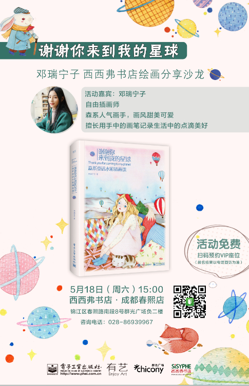 这是一个奇妙的星球,也是爱丽丝梦游仙境里的兔子洞,打开的瞬间让你仿佛进入里另外一个星球、另外一个仙境。当然这也是一本超级详细的森系水彩绘本书,5月18日,邓瑞宁子将用最详细的解说来教大家如何画出森系童话质感的水彩画,把平凡生活变成童话世界。