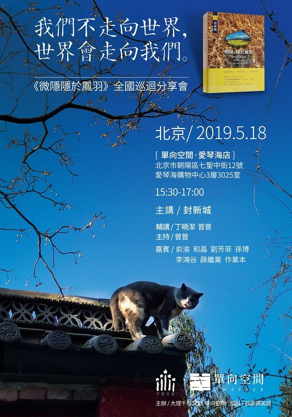 继徐霞客后,400年间,凤羽第二次被发现。那个发明了“生活家”这个词,创造“台湾最美的风景是人”的前《新周刊》执行总编,而今在中国大陆西南角,发现了一个最像台湾和日本的“微隐居”秘境。5月18日下午,我们不走向世界,世界会走向我们——《微隐隐于凤羽》各地巡回分享会开启重要的一站——北京,本书作者封新城将和大家分享凤羽和他的“微隐观”。