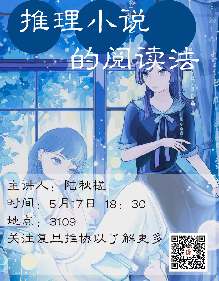 复旦大学推理协会成立十周年纪念活动,特别邀请协会毕业生、推理作家陆秋槎为大家分享推理小说的阅读法。推理小说有什么独特的审美价值,如何阅读才能享受最大限度的乐趣,如今针对推理小说又有哪些偏见需要破除,陆秋槎为大家一一道来,不论是初学者还是推理迷应该都能有所收获。
