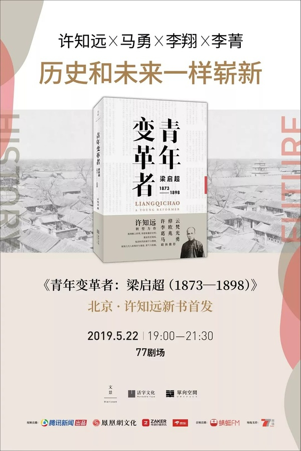 5月22日,许知远五年积淀,转型力作,《青年变革者:梁启超(1873—1898)》新书首发式将于77剧场隆重举办。中国社会科学院研究员马勇、资深媒体人李翔、《三联生活周刊》常务副主编李菁现场助阵,与许知远展开一场以“历史和未来一样崭新”为主题的对话。