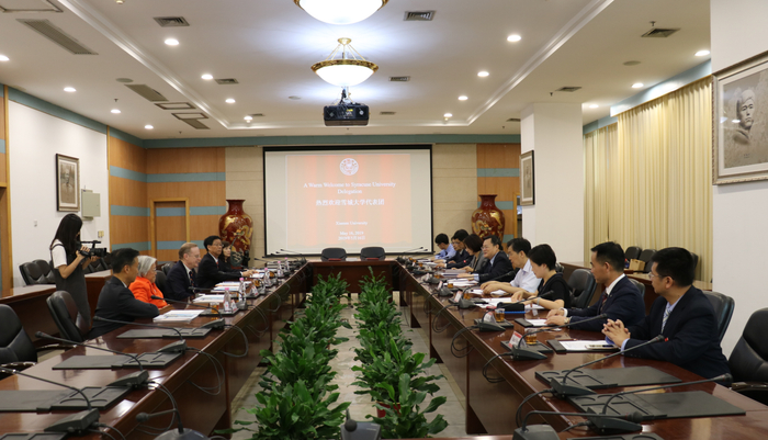 5月16日下午,美国雪城大学校长Kent Syverud率团来访,张荣会见了客人。会上,双方签署了校际合作备忘录,根据备忘录,进一步扩大深化合作领域与合作范围。国际处副处长余宏波主持会议。研究生院培养与管理办公室、社会与人类学院、人文学院、信息科学与技术学院、海洋与地球学院、化学化工学院等有关人员等出席见证签署仪式。