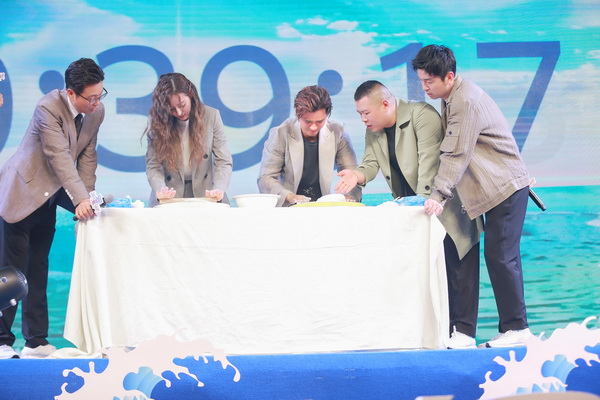 发布会中,“极挑团”依旧是不走寻常路,黄磊、罗志祥、张艺兴、王迅、迪丽热巴、岳云鹏、雷佳音模拟节目海报中“踏浪前行”的概念,拿着船桨登场。出场方式别出心裁,更呼应了第五季“长江行”主题。