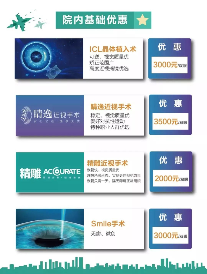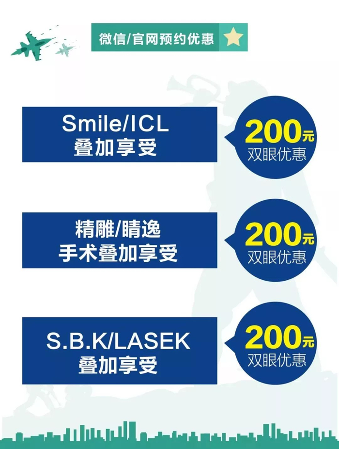 为了帮助应征青年解决视力问题,贵阳爱尔眼科医院特联合湖南爱眼公益基金会开展此次“热血铸军魂 爱尔助从戎”应征青年近视手术补贴公益活动,参军入伍青年可享受以下优惠,最高优惠6700元。