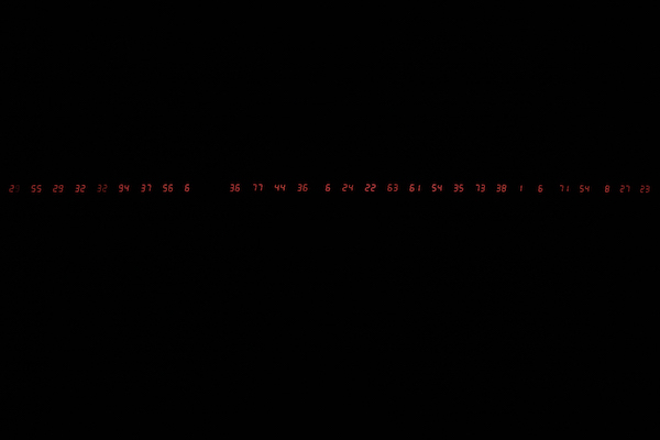 宫岛达男:我用的数字没有什么特别的意思。我之所以采用数字这个形象,是因为数字的变化可以非常形象地阐明一个变化的过程,以及一个时间流逝的过程。同时,数字是全世界各地的人们都可以理解的东西。因此还是那个理念,只要有助于充分表达我的思想的,不管选什么素材都可以。数字本身是没有什么特别含义的,只是一个形式,一种共通的东西。