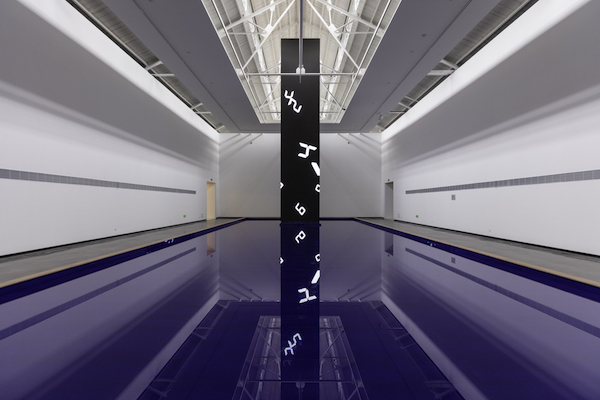 宫岛达男:首先是《时间瀑布》,这是我目前为止做的同系列的装置作品里最大的一个。我在作品下方设置了一个水池,整个装置是浮在水池上面的。我想通过这件作品向大家展示出时间的流逝和生命的重要性。我想这样一个装饰非常有魅力,具有吸引力的。