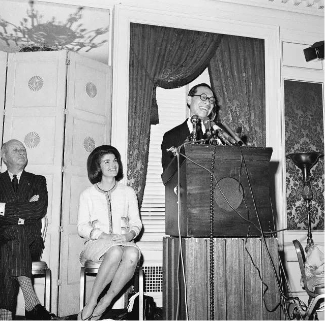 ↑1964年贝聿铭和杰奎琳·肯尼迪出席新闻发布会