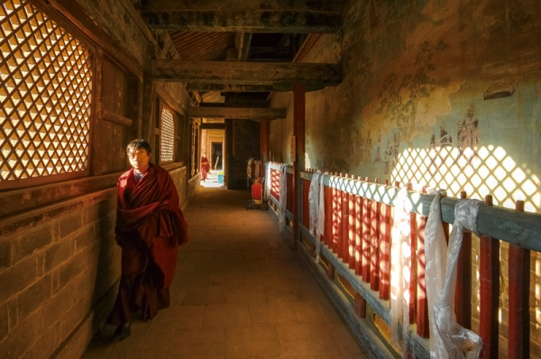 明代名寺瞿昙寺是藏传佛教格鲁派寺院,因所藏珍贵文物及巨幅彩色壁画而闻名。透过光影,仍能看出这些壁画保存完好。摄影/张海东