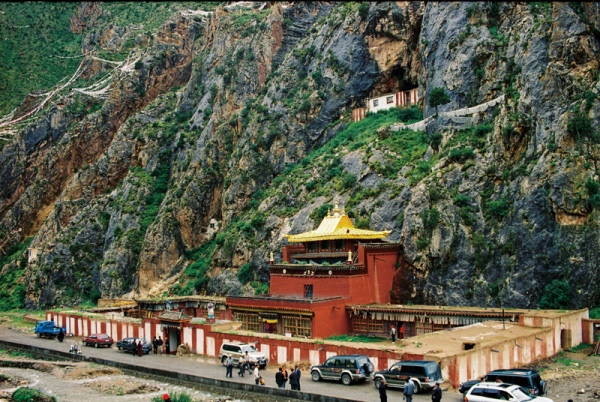 文成公主庙,也叫大日如来佛石窟寺。这个寺院要比我想象的小得多,但是当我走进殿堂,看到大日如来石刻佛像时,我还是被深深地震撼了。大日如来佛像身形巨大,神情庄严却又透着慈祥,让人感到既神圣又亲切。据当地传说,文成公主进藏时经过此地,曾梦见大日如来佛显现为她祝福,于是便命人在她梦见大日如来佛的地方建白塔以示纪念。一年后的公元742年,比丘译师益西永开始在白塔旁的岩壁雕刻大日如来佛及八大随佛弟子像,历经11年雕刻完成。在此之后,各派僧人纷纷来此修行,这里也逐渐成为玉树藏区的佛教圣地。