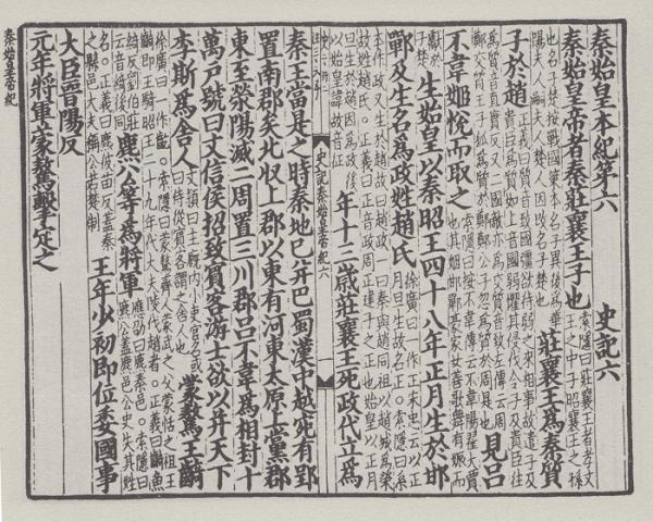 所以,下面还是从《史记·秦始皇本纪》以及《史记·秦本纪》的文本说起,而帮助我们了解《史记·秦始皇本纪》和《史记·秦本纪》文本的最佳途径,便是今本《史记·秦始皇本纪》在“名为政,姓赵氏”句下的被后世称作“三家注”的三种古注:
