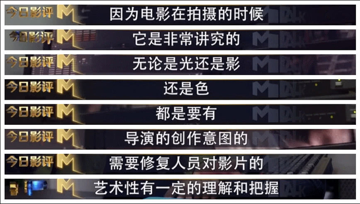 CCTV6电影频道技术部主任魏晓玲介绍,电影在拍摄的时候对光、影、色是非常讲究的,都融入了导演的创作意图,因此,这就需要修复师对电影有一定的把握。