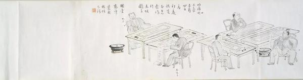 展品《正仓院御物修理图》,是一卷描绘宫内省图书寮在当时赤坂离宫进行正仓院宝物修理时模样的作品。对于传达当时修理的情况来说,这是非常宝贵的记录。
