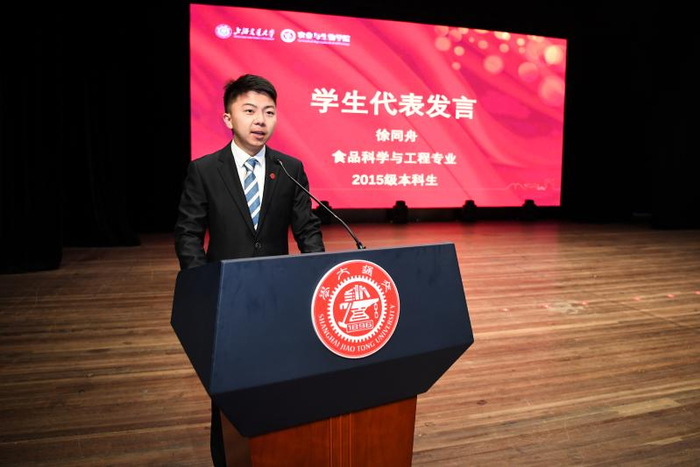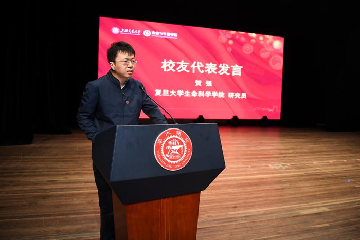 校友代表、我院生态学专业2013届博士毕业生贺强发言。他深情回忆了在农生学院的求学经历,良师益友,收获颇多。现在,作为一名人民教师,他将培养优秀的生态学家作为自己工作的重中之重,这种信念是农生学院人才培养理念的传承。学院教师代表黄丹枫教授发言。三尺讲坛辛勤耕耘,呕心沥血教育新人。黄丹枫回忆了自己与农生学院共同成长的点滴,在农生学院教书育人岗位上奋斗多年的教师们脚踏实地,承担着科教兴农和人才培养的重任。最后,她代表学院教师祝愿学院一流农科梦早日实现。食品科学与工程专业2015级本科生徐同舟代表全体在校生向农生学院表达衷心的祝福。徐同舟表示,作为交大学子要秉承严谨务实的求学态度,心怀家国,践行责任和担当。许多农生学子选择前往祖国的中西部地区工作,将青春绽放在祖国最需要的地方,他们也将传承前辈们的精神,为中华民族复兴贡献力量。