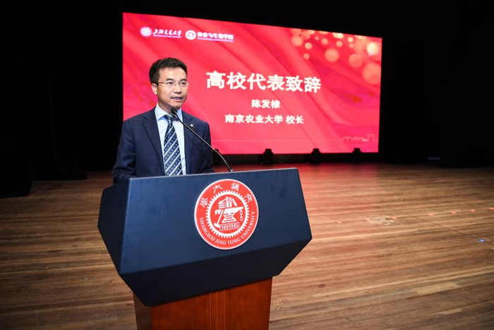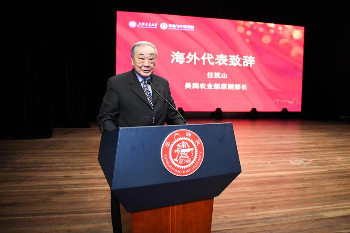 随后,美国农业部副部长任筑山代表海外单位致辞,他肯定了农生学院在国际化办学方面的发展,同时也希望学院在现代农科研究的国际化发展道路上不断取得新成绩。中国科学院院士、北京大学原校长许智宏代表高校致辞。他指出,中国的农业还有很长的路要走,高校承担着乡村振兴、发展“三农”的重大历史使命,希望农生院能够借助自身优势继续促进农科发展,引领本专业人才发挥所长,同时吸收非农业人才贡献智慧,为中国未来的农业发展做出更大的贡献。南京农业大学校长陈发棣在致辞中表示,如今的中国社会对农业的重视程度、农业相关研究和探索的投入都达到了前所未有的高度。他希望交大农生学院与南京农业大学之间的友谊越来越深厚,不断在人才培养、科学研究、师资队伍等方面开启新篇章,积极推进相近学科、专业之间的资源共享、优势互补,共谋发展,为建设世界一流的农业学科不懈奋斗。