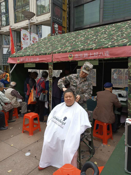 图说:南京路上好八连官兵正在开展为民服务活动。李成 摄(下同)