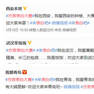 5月20日,是网络时代的“表白日”,也被网友们戏称为“强行塞狗粮的一天”。最近几天的微博上,“来表白吧”“方言表白大赛”“520”等,都成了热门话题,有的表白自己的爱人,有的表白自己的家乡,还有的表白自己喜欢的明星。