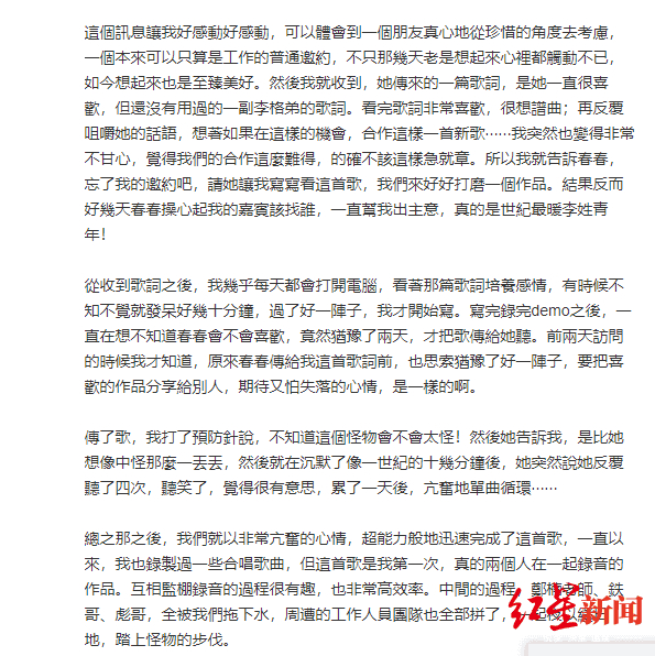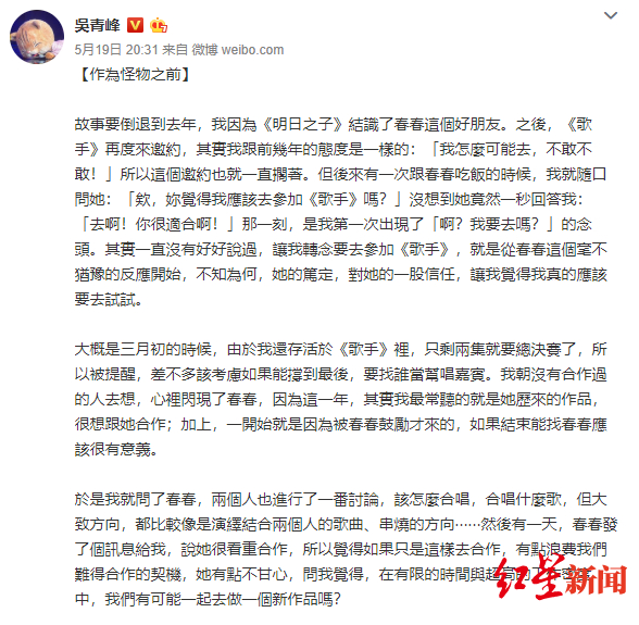 红星新闻记者 任宏伟 图据吴青峰微博